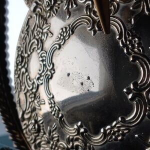 Silver plated with delicate designs.