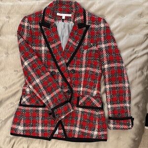 Veronica Beard Red Plaid Double-Breasted Jacket