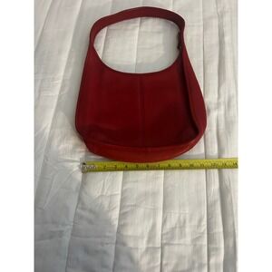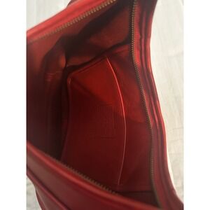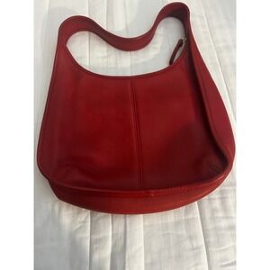 Keywords: Coach bag, red purse, leather handbag, hobo style, shoulder bag, classic design, glove tanned leather, everyday bag, designer purse, vintage coach, iconic style, fashion accessory