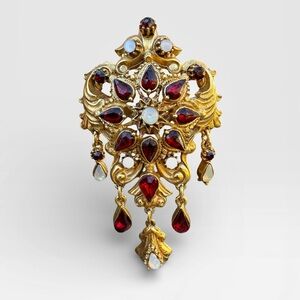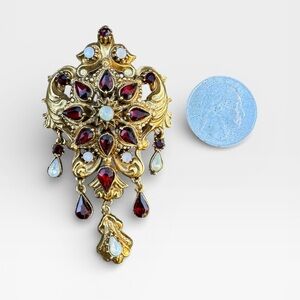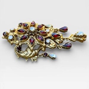 FLORENZA Victorian Revival Guilded Faux Garnet and Opal Brooch