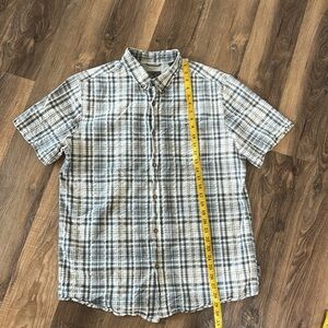 Royal Robbins Short Sleeve Button up Shirt Mens Large Outdoor Gray/Tan Plaid