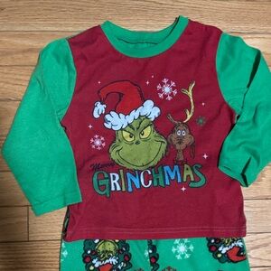 Cozy up your little one in these Grinch-themed pajamas. Featuring a festive red and green design, these pajamas are perfect for holiday fun.