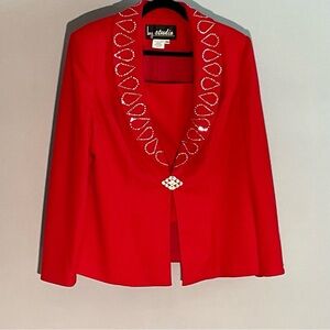 BMJ Studio Red Rhinestone Embellished Evening Jacket 16W w/ Removable Dickey