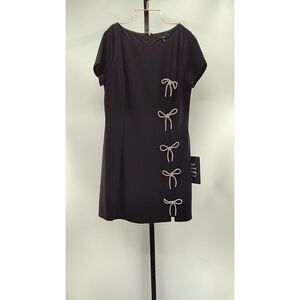 Lulus Endearing Sparkle Rhinestone Bow Mini Dress Black Basic Sleeveless L