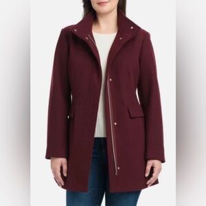 Vince Camuto Women’s Faux Wool Deep Burgundy Pea Coat Medium NEW