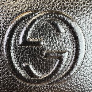 Gucci Soho Disco Wallet on a Chain WOC black pebbled leather. Already authenticated with COA. Goldtone crossbody chain has leather comfort strap, and is removable so the bag can be used as a clutch. Front snap closure opens to a front section, and main compartment with 6 card slots, slip pocket, and zip compartment. Full set comes with box, tissue paper, dustbag. The perfect everyday bag. Cleaned and conditioned.