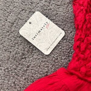 Iconic Free People Adella Cami in a stunning cherry red, new with tags and never worn. This beloved style features intricate crochet lace detailing at the top with a flowy, tiered A-line silhouette for an effortlessly feminine look.
