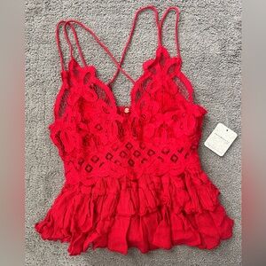 Free People NWT Adella Cami | Cherry Red Crochet Lace Tiered Top | Size S