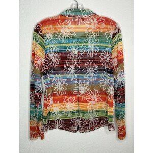 Damee Inc Jacket Womens Medium Rainbow Floral Mesh Studded Zip Stretch Vintage