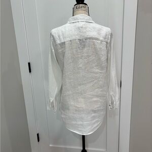 Stylish and versatile white button down. Ideal for casual outings. Soft linen fabric for all-day comfort.