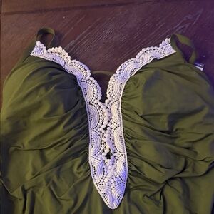 NWT size XL Olive Green One Piece Swimsuit with Lace Trim