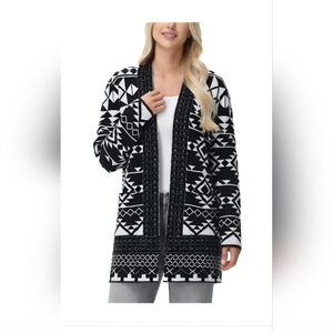 Frye Womens' Southwestern Patterned Jacquard Black & White Cardigan Size XL