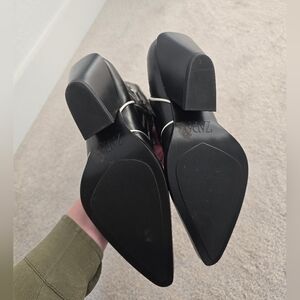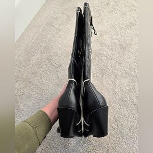 Zara cowboy boots, heeled western boots, floral cowboy boots, black white boots, western style, festival outfit, Coachella boots, country concert look, pointed toe boots, ranch style boots, cowgirl fashion, trendy Zara boots, statement boots, boho chic boots, floral embroidery, western heels, ankle cowboy boots, pull on boots, designer inspired, modern cowgirl style