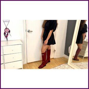 These stylish knee-high riding boots combine a classic motorcycle aesthetic with everyday versatility. Their comfortable design and chic details make them a standout addition to any wardrobe.
