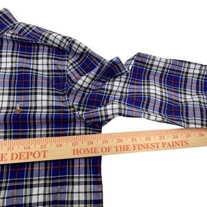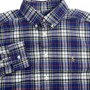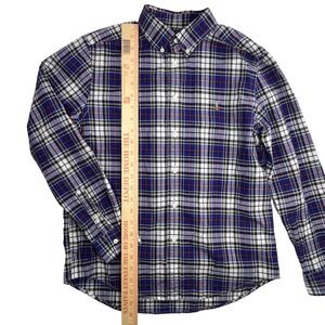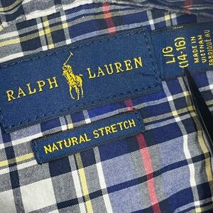 Ralph Lauren Boys Natural Stretch Button Down Blue Plaid 14/16 Large Flesh Pony