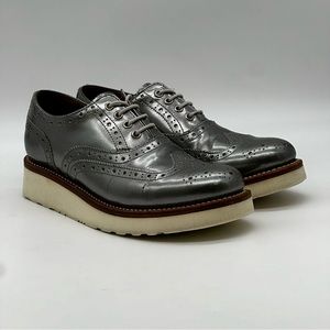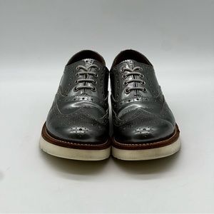 Stylish gray platform brogues by Grenson. Features classic brogue detailing.