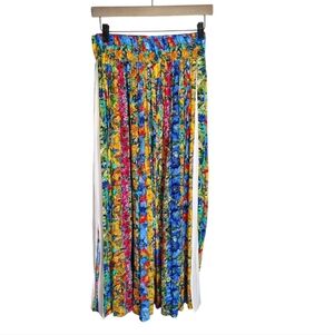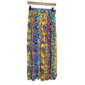 Floral Pleated Skirt Womens Size 8 Vintage 90s High Waist Midi Bright Colorful