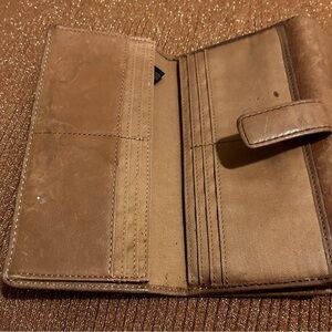 The is a sturdy well made beautiful wallet/clutch. Fossil has been a leader in leather goods for years. This item is preloved and flaws can be seen in pictures. Its price reflects that. Thanks for looking!