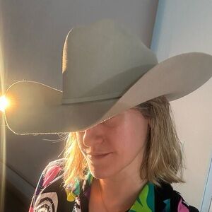 Step up your style with this classic tan cowboy hat. Its timeless design and comfortable fit make it a versatile accessory for any occasion. The Twister Dallas Wool Felt Cowboy Hat is a wool hat with a matching hatband and buckle set.