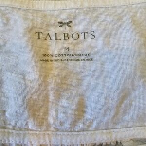 Talbots Women's Size Medium White Blue Square Neck Embroidered Sleeveless Top. Please see the measurements in photos provided. In good Pre-owned condition with a tiny mark on the armpit area as shown in picture. Cross posted. I ship out same or next day. Thanks for looking!