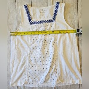 Talbots Women's Size Medium White Blue Square Neck Embroidered Sleeveless Top