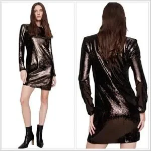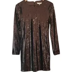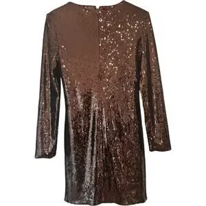 Banana Republic Stretch Sequin Chocolate Ganache Brown Long Sleeve Dress Sz M