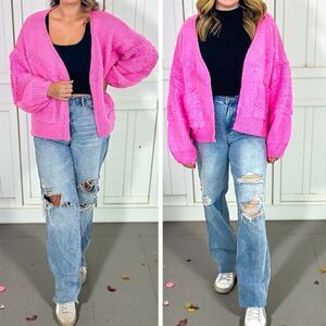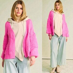 Pink Side Slit Open Front Cardigan Size Large NEW - Davi & Dani