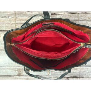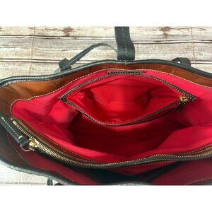 Dooney Bourke Dover Croc Embossed Leather Tote Bag Brown Black