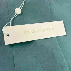 NWT Jonathan Simkhai Straight High-Rise Blue Pants Front Slit Size Xtra-Small