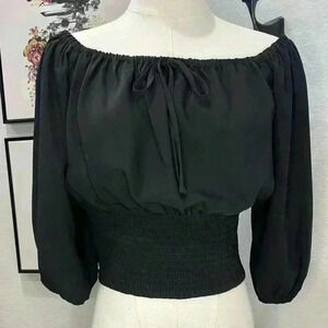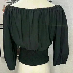 NWT GIANNI BINI WOVEN CANYON Black Quarter Sleeve Top W/ruched Waistband SZ SM