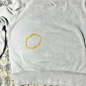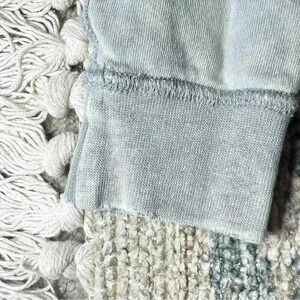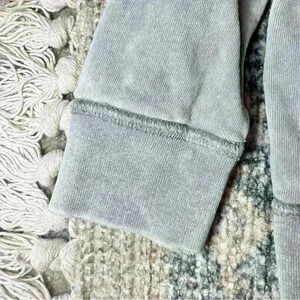 Good, pre loved condition. Just a small hole on backside (see pics), but fits with distressing look. Distressing on rim of cuffs as well.