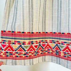 NWT Savanna Jane Gray Striped Embroidered V-neck Seeveless Dress Size Small