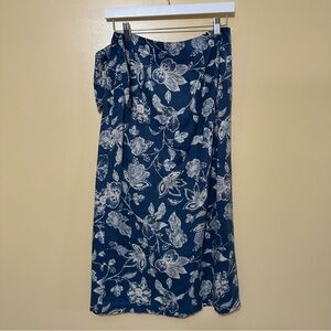 Ann Taylor Wrap Tie Floral Linen MIDI Skirt Women 4 Petite Blue