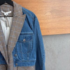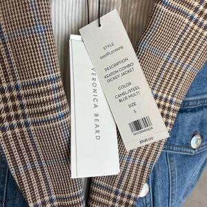 NWT VERONICA BEARD Keaton Plaid Denim Combo Dickey Jacket, Size S