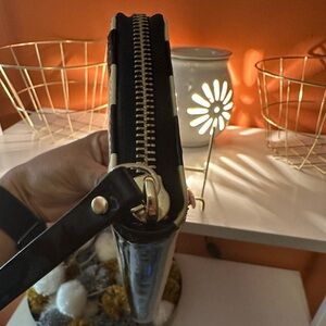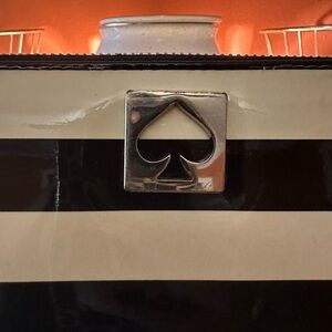 Stylish KATE SPADE Penn Valley Neda patent leather zip-around wallet featuring bold black and cream stripes. Perfect for everyday use or paired with a beautiful KATE SPADE ♠️ bag.