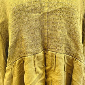 NWT SONOMA Women Long Sleeve Pullover V- Neck Shirred Green Casual Shirt