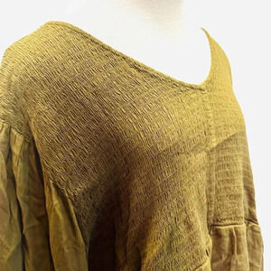 NWT SONOMA Women Long Sleeve Pullover V- Neck Shirred Green Casual Shirt Size 4X