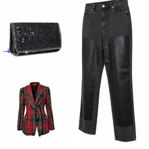 Iconic Stella McCartney Falabella fold-over clutch in a striking black shimmer finish. A statement piece with the brand’s signature chain trim—ethically made, instantly recognizable, and perfect for evening or elevated day wear.