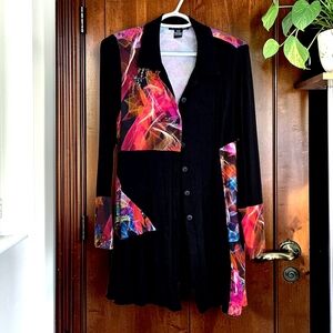 Pleated front, high rise, belt loops, snap & zip front.