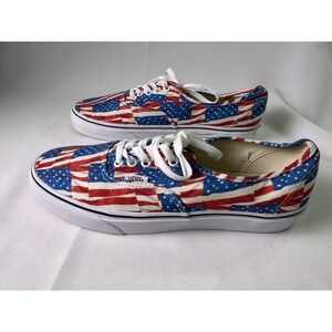 Keywords: Vans Authentic, USA Flag Print, Low Top Sneakers, Canvas Shoes, Men's Size 9.5, Women's Size 11, Patriotic Footwear, American Pride, Casual Sneakers, Summer Shoes, Street Style, Limited Edition, Collectible Vans, Bold Print, Comfortable Shoes