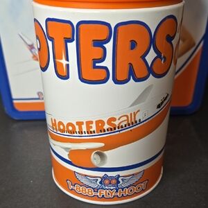Hooters Air lunchbox set. Bold blue and orange design. Includes matching thermos. And Hooters hat included.