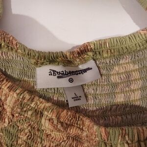 Agua Bendita x Target Mini Dress L Green Floral Smocked Short Sleeve Boho