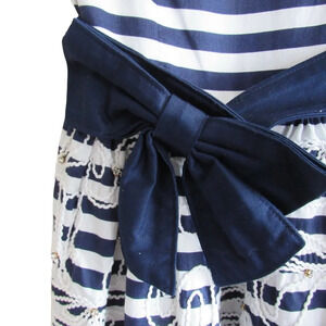 Lilly Pulitzer Roswell Dress Size 00 White Navy Stripes Cording Sleeveless Bow Preppy Nautical