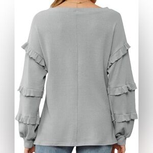 Waffle Knit Boho Top With Ruffle Sleeve Women’s Medium NEW