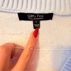 Embrace a whimsical style with this sky blue cardigan featuring a charming cloud pattern. Perfect for adding a playful touch to any outfit.
