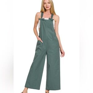 NWT Zenana Woven Stretchy Knot Tie Green Overalls