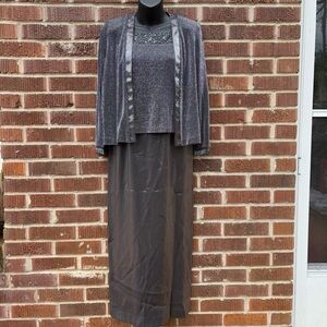 Alex Evenings 2 Piece Sparkly Gray Silver Formal Long Dress Sz 6-8 Petite