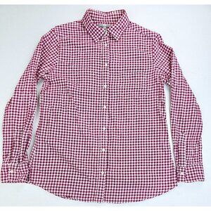Uniqlo Size Large Womens Red White Check Flannel Long Sleeve Cotton Pocket Shirt