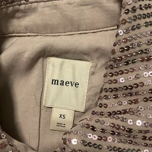 Anthropologie Maeve Bettina Sequin Tiered Mini Shirt Dress Silver