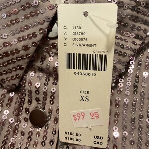 Elegant silver dress with sparkling sequins. Perfect for formal occasions, size XS relaxed silhouette elasticized 3/4 sleeve side pockets, button front, gray silver or pink silver color may vary due to lighting.
